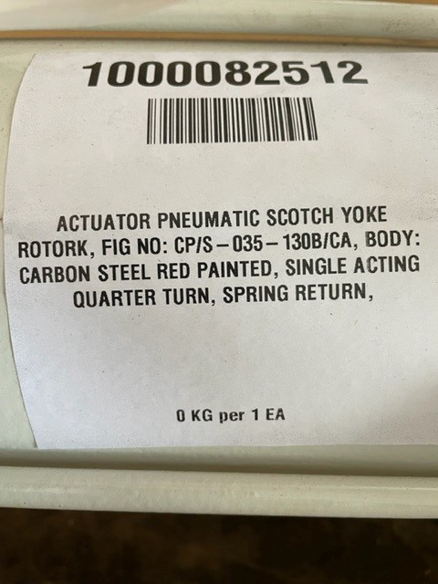 New, unused Rotork CP/S-035-130B/CA spring return pneumatic actuators, coated with a Norsok coating syetem suitable for offshore use. no further documents available.